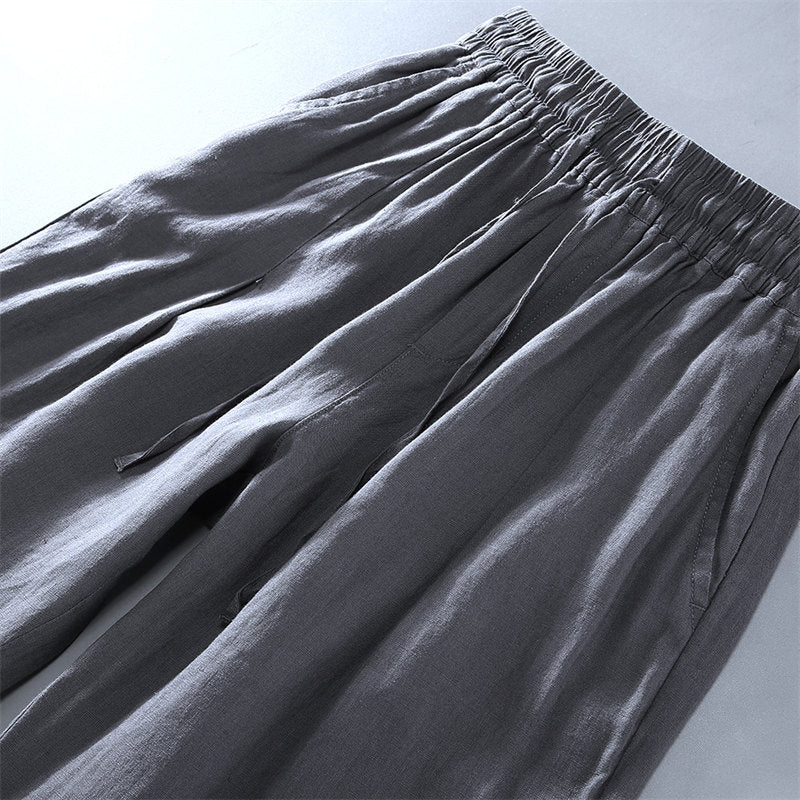 Elevate your casual look with these men's linen drawstring cropped pants. The adjustable drawstring waist and cropped length offer both comfort and on-trend style.